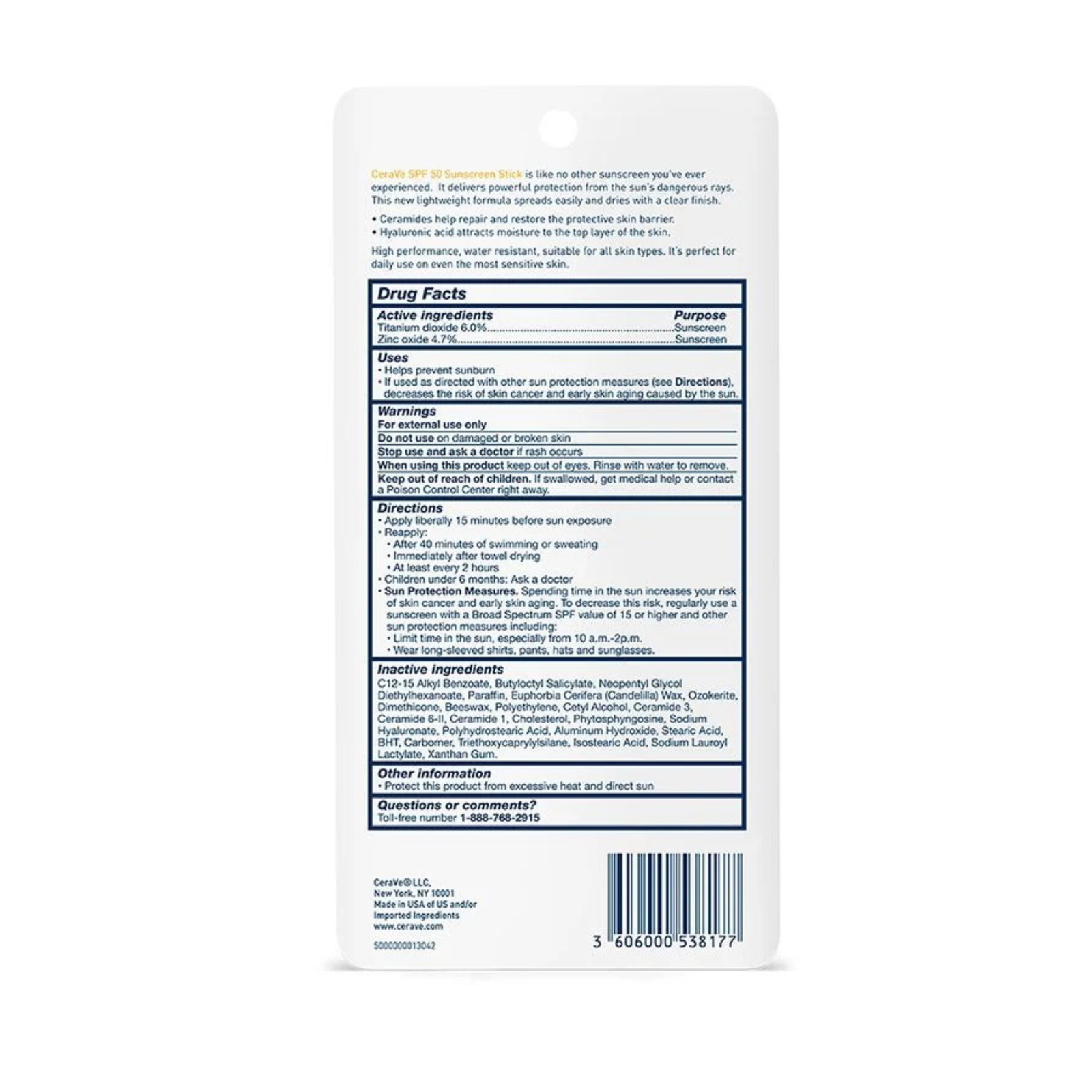 CeraVe Sunscreen Stick SPF 50 – 100% mineral sunscreen with broad-spectrum UVA/UVB protection, 3 essential ceramides, water-resistant, and gentle for sensitive skin.
