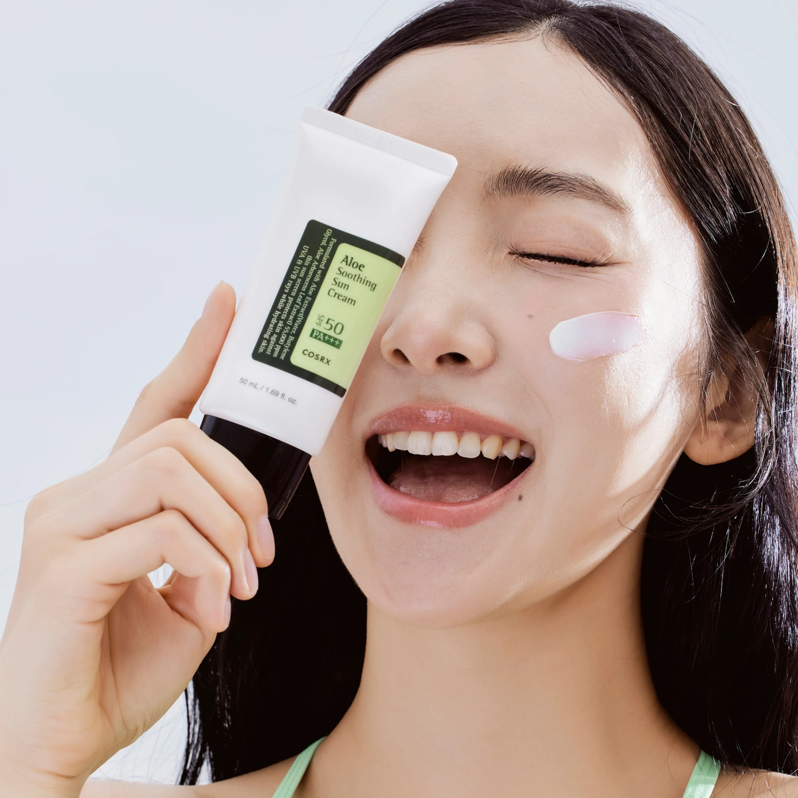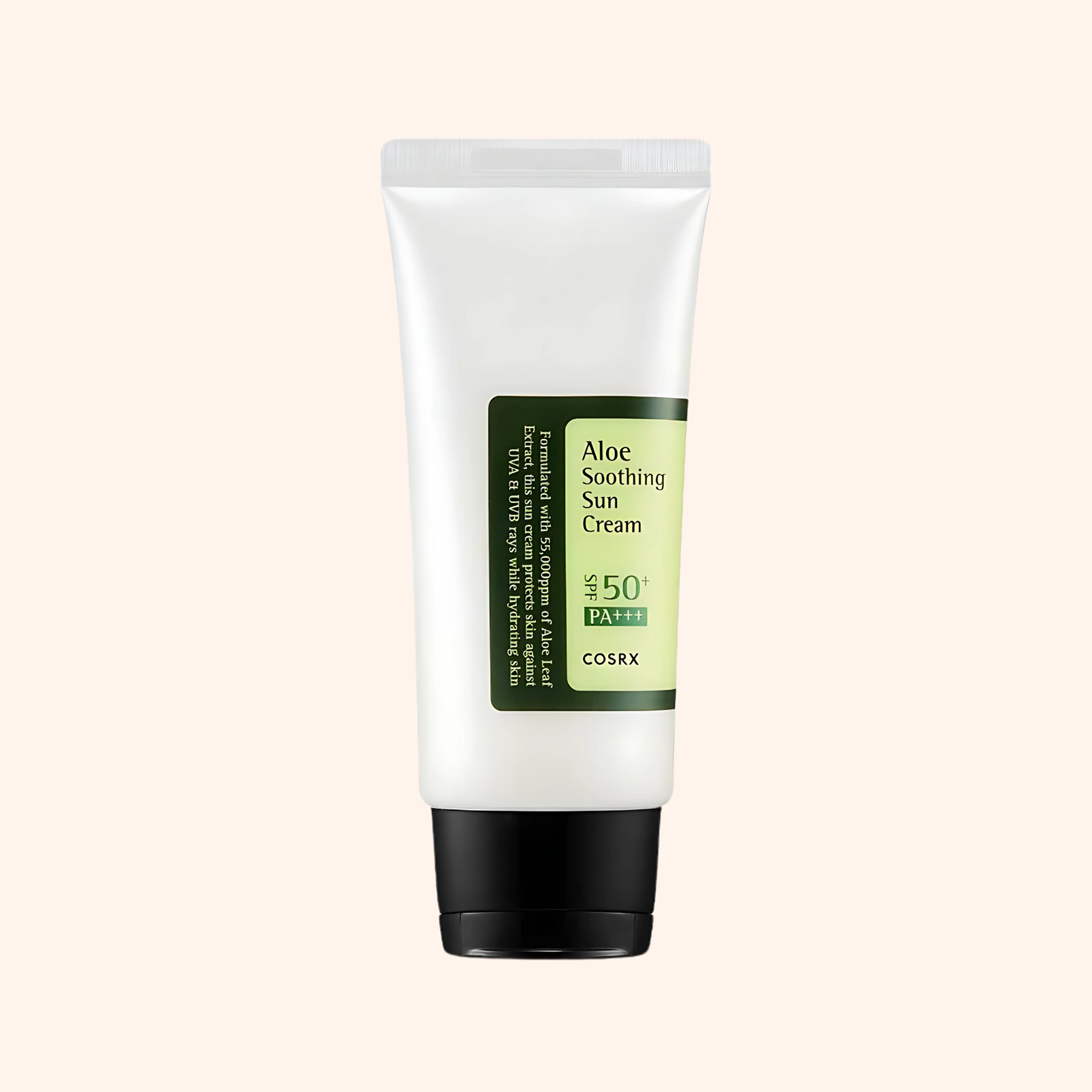 COSRX Aloe Soothing Sun Cream SPF 50+ PA+++ (50ml) – A lightweight daily sunscreen with Aloe Arborescens Leaf Extract that hydrates, soothes, and protects against UVA & UVB rays without leaving a white cast. Perfect for all skin types, even sensitive skin.